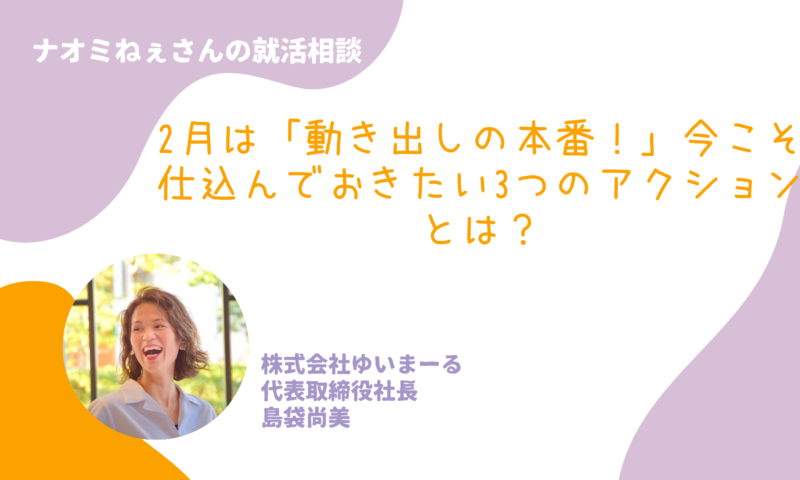今日は、私がこれまで多くの若者と向き合ってきた経験から、2月にやるべき3つのアクションをお伝えします。